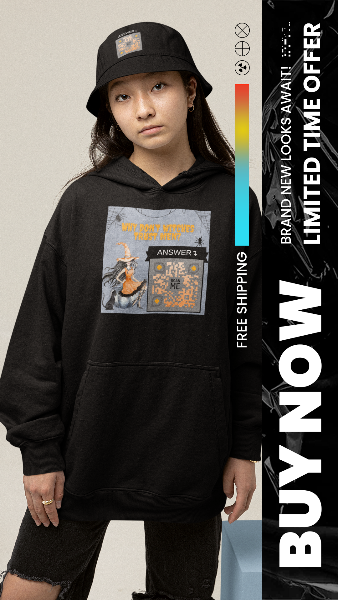 Step into our Halloween QR Collection, where every scan reveals more than spooky fun—it unlocks positivity, laughter, and a little magic. From uplifting quotes to playful surprises, our tees and hoodies are designed to inspire while keeping the Halloween spirit alive. Wear your style, scan the magic, and let every moment remind you to chase your dreams without fear.